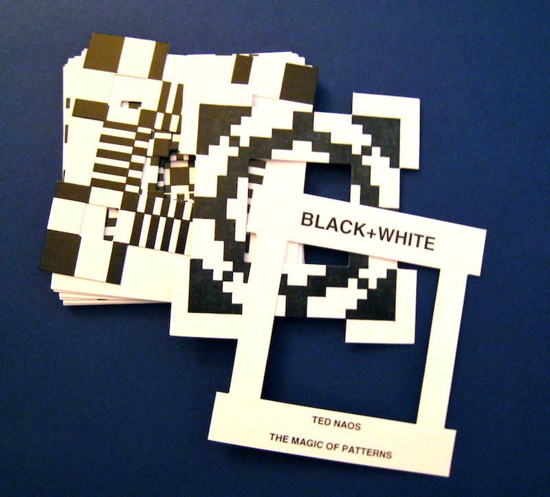 Created back in 2006, it’s basically “sixteen die-cut panels with different black and white images on them. By overlapping and exchanging the panels, hundreds of new patterns appear…[producing] the illusion of 3-D designs.”