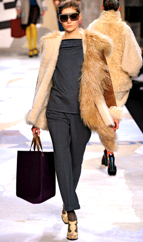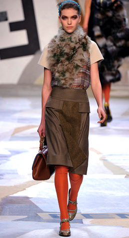 But then, I also thought about this look (check out the flowing flaxen stole) from the Fendi Fall 2011 Ready-to-Wear Collection: