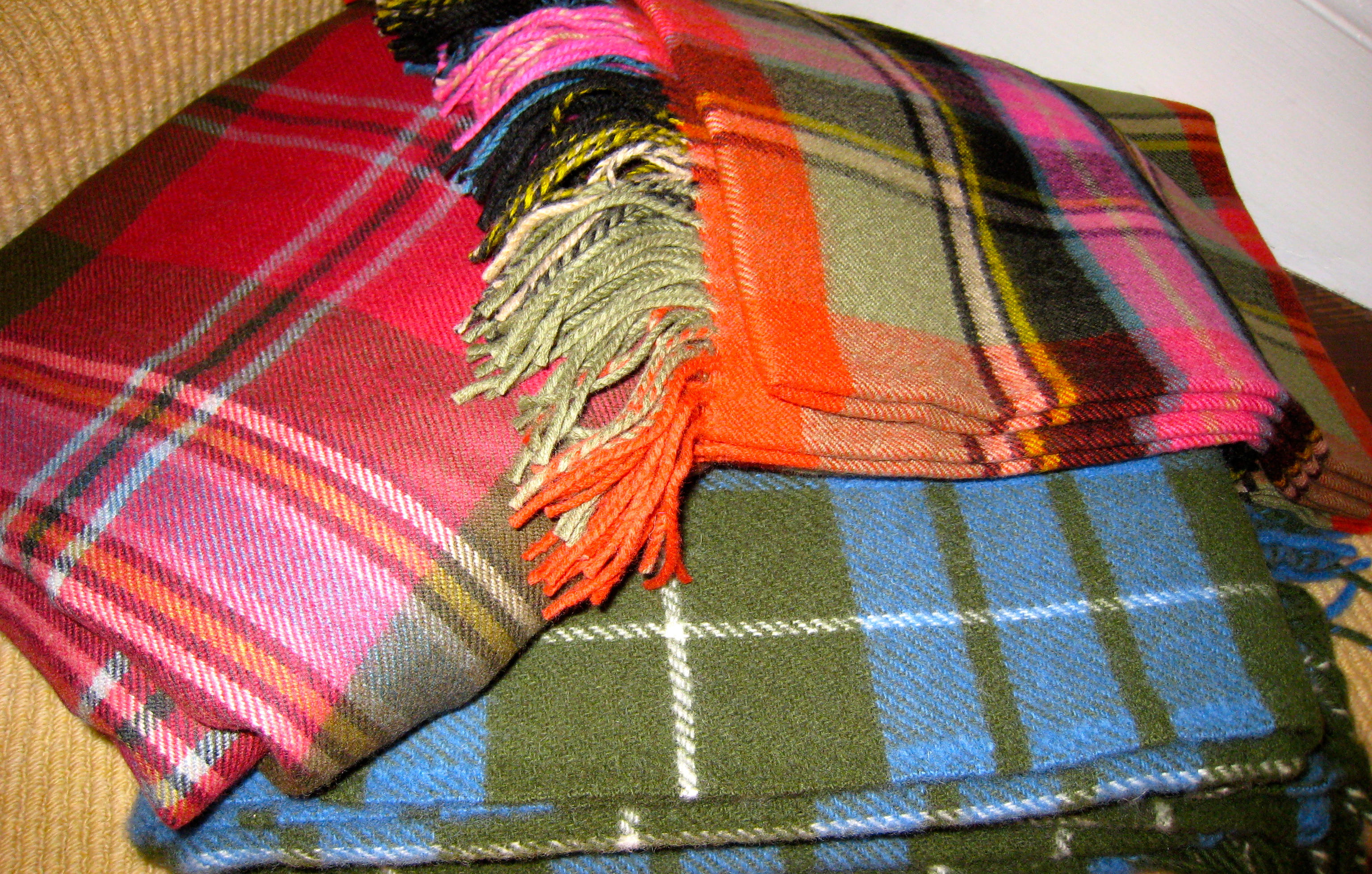 I’m actually not obsessing over tartan prints as a sartorial statement, like kilts or golfer Ian Poulter’s pants. It’s more for home décor. Maybe it’s because my parents kept a Royal Stewart lambswool throw in our family room for years (my mom still has it), but tartan blankets represent warm coziness to me.