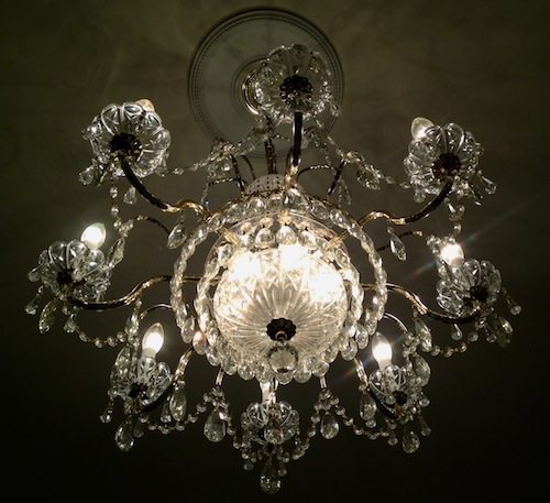 One of my mom’s favorite pieces: crystal chandelier in the dining room.